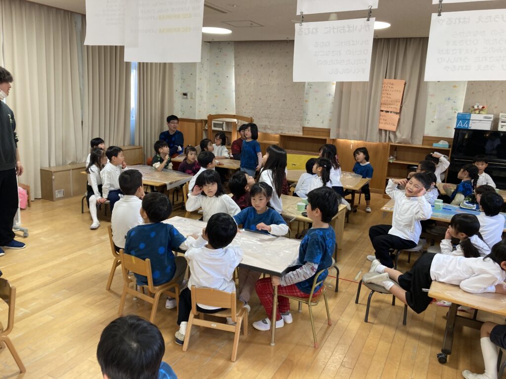藤の里保育園の聖劇を見に来た山崎保育園の5歳児、ゆり組のお友だち。
